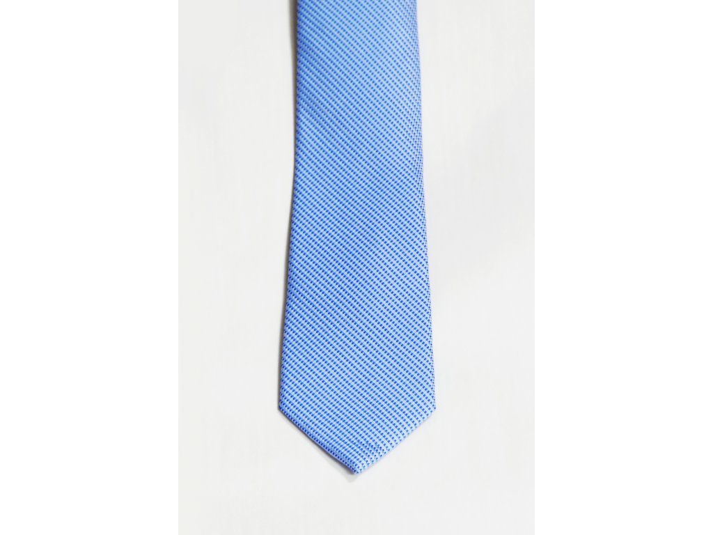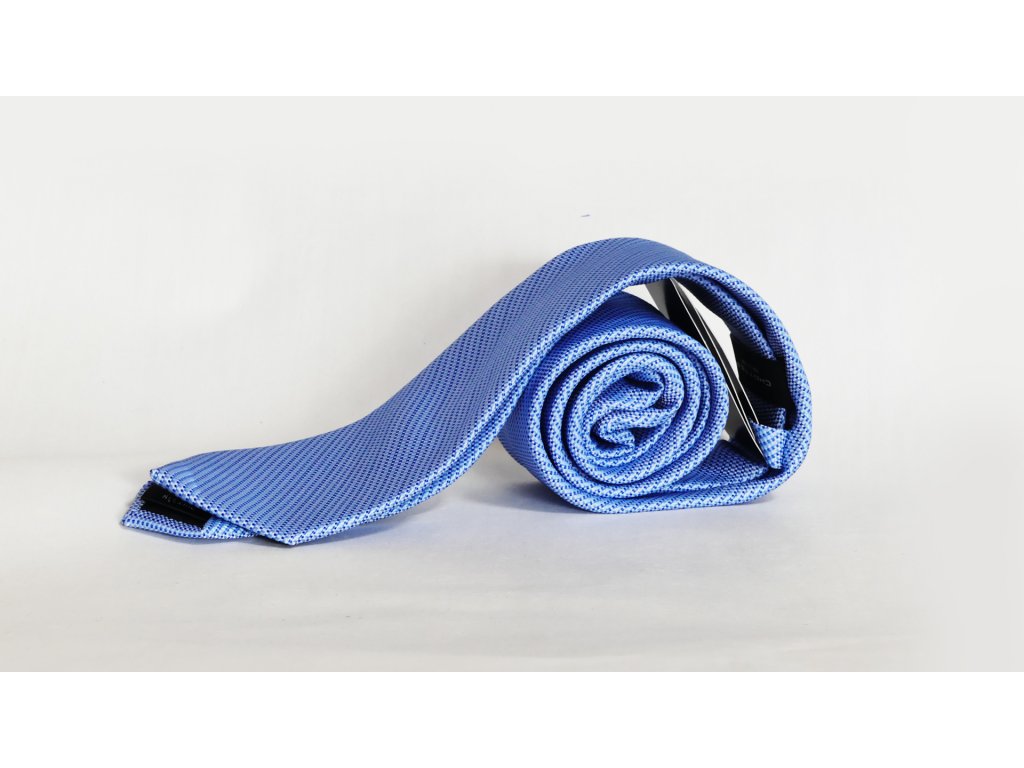 Modrá kravata s rafinovanou strukturou je neodmyslitelnou součástí obleku, která se hodí na většinu společenských událostí.
