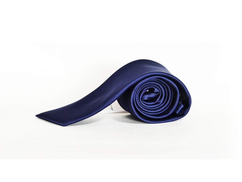 Tmavě modrá kravata je neodmyslitelnou součástí obleku, která se hodí na většinu společenských událostí.