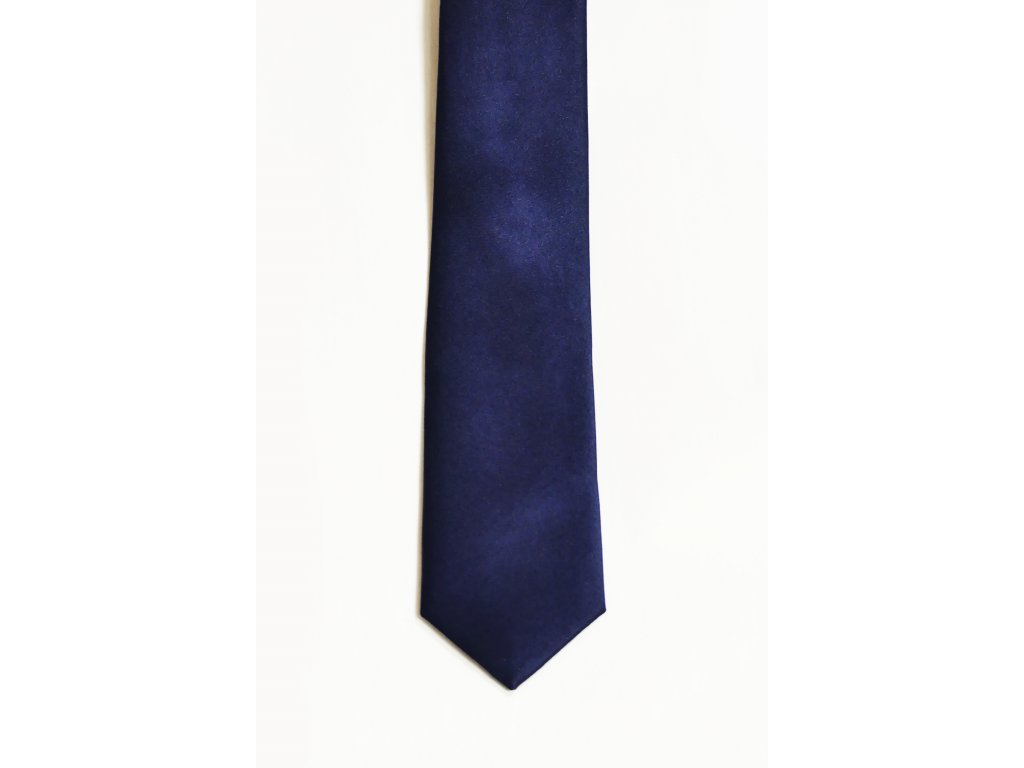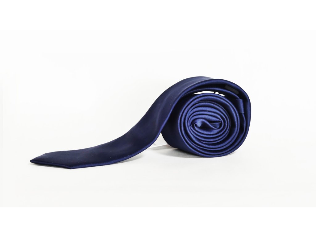 Tmavě modrá kravata je neodmyslitelnou součástí obleku, která se hodí na většinu společenských událostí.